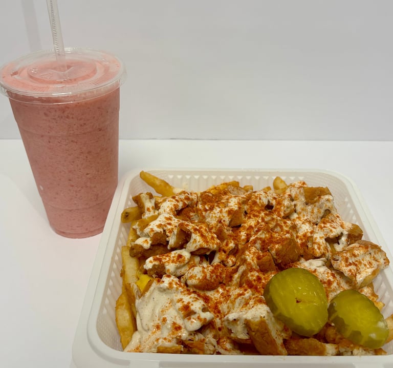 We specialize in premium, comfort food featuring our signature Nashville Hot Chicken Smackwich & fries, along with savory Chicken, Gyro, and Crispy Falafel Rice Platters. Chicken, Gyro, and Crispy Falafel Pita bread Sandwich. For a lighter option, explore our fresh Chicken, Gyro, Falafel Salad Platters, and complete your meal with one of our handcrafted signature Strawberry, Pineapple, Mango, Banana smoothies or Vanilla, Strawberry, Chooclate, Cookies and Cream milkshakes.